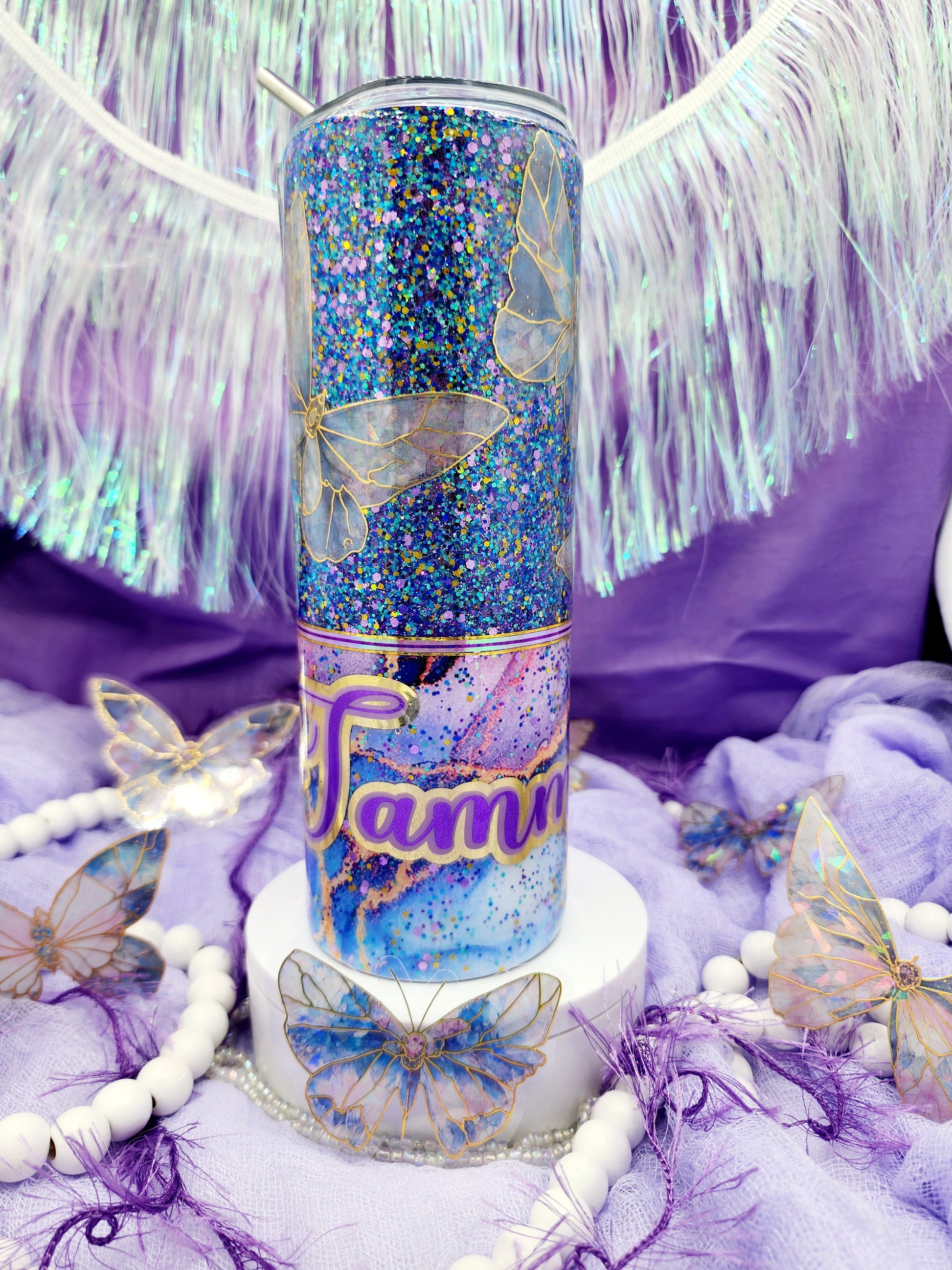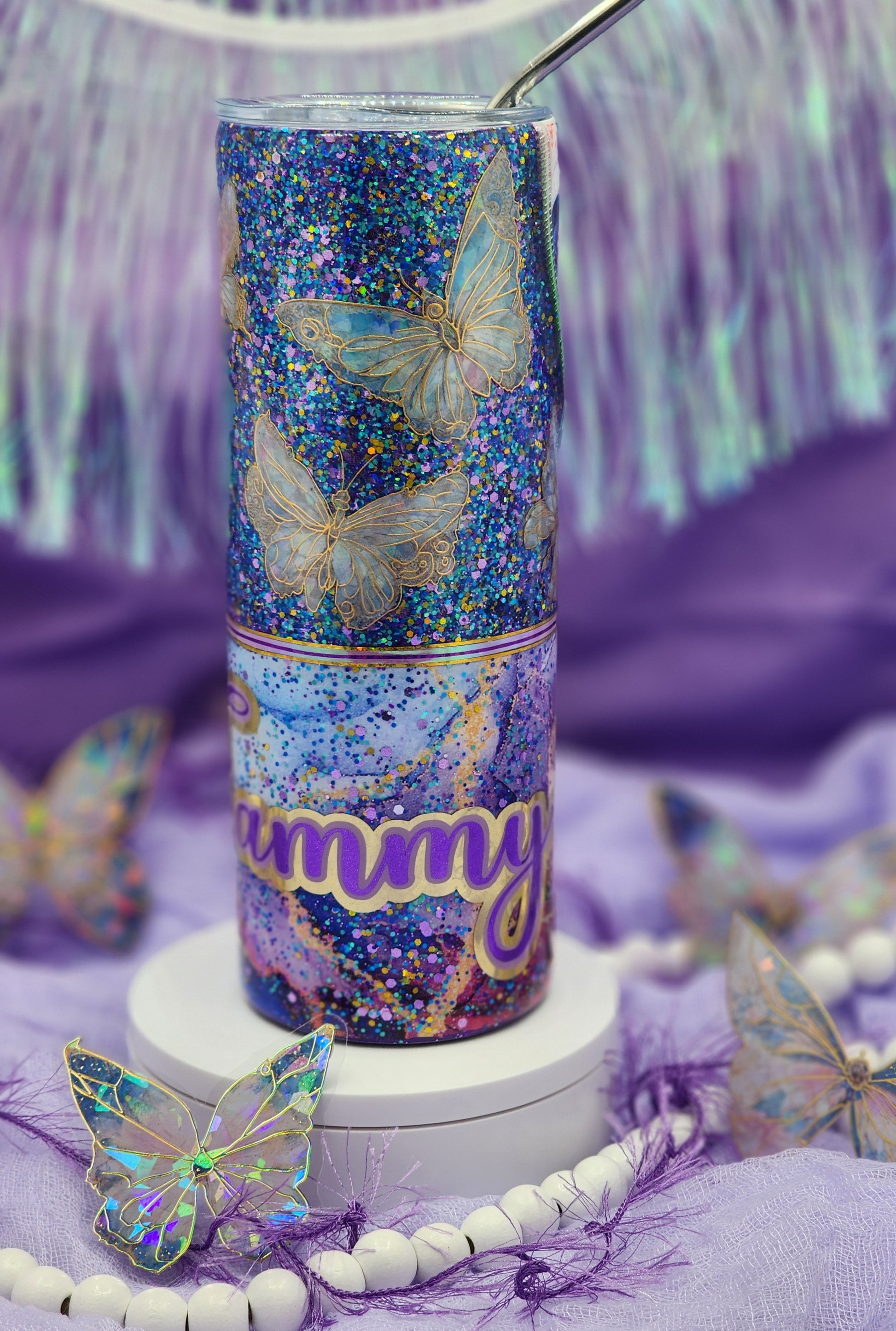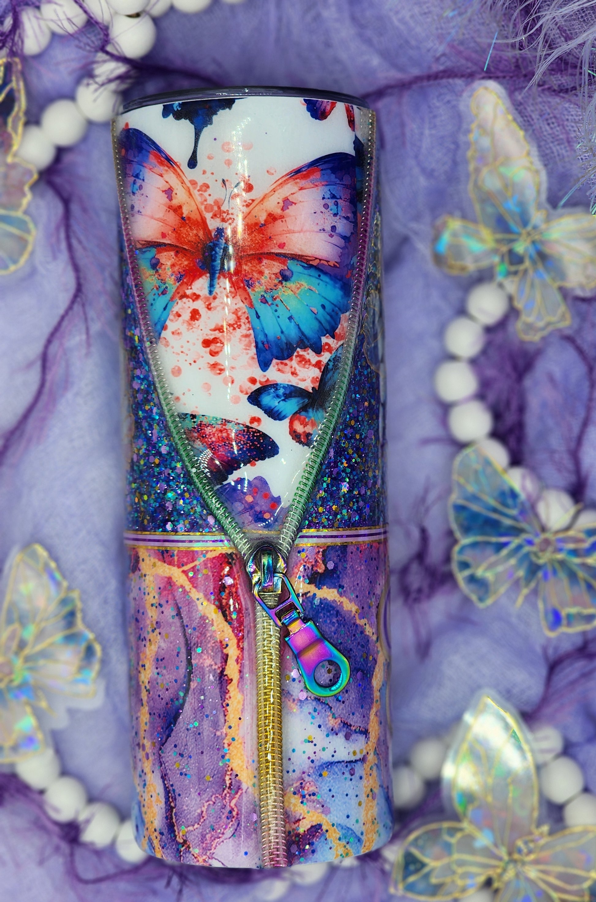 Experience elegance and whimsy with our Butterfly Tumbler featuring a Faux V-Split Zipper design in captivating shades of purple. This unique tumbler seamlessly blends fashion-forward design with functional excellence, making it a must-have accessory for your beverage needs.