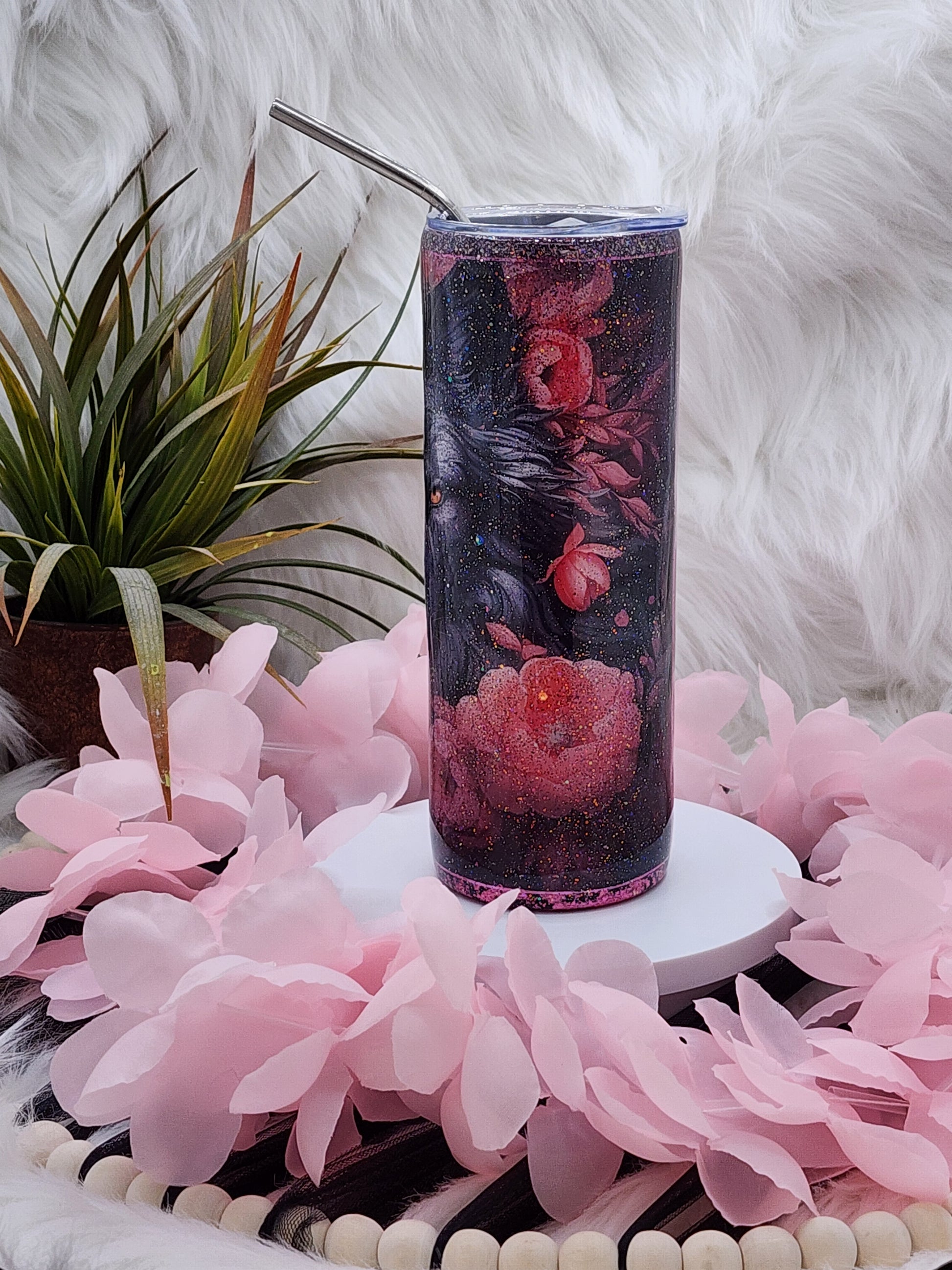 Embrace the untamed beauty of the wolf alongside the delicate elegance of pink roses with this captivating tumbler. Perfect for nature lovers and those with a penchant for wildlife and floral motifs, this tumbler merges majestic strength with feminine grace, making it a stunning addition to your drinkware collection.